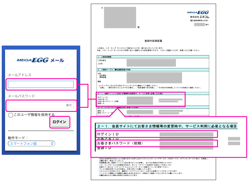 ご契約時にお送りしている「登録内容確認書」をご覧の上、各項目を入力し【ログイン】をタップします。